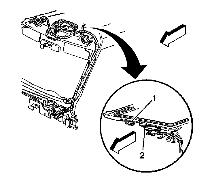 4. Slide the sunroof control module (2) to the right in order to remove the sunroof control module from the vehicle.