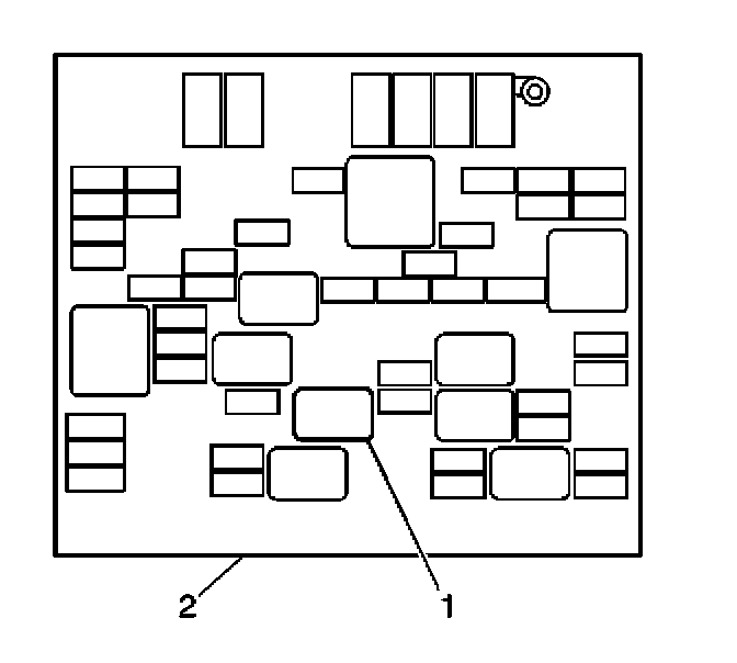 1. Install the compressor relay (1) to the underhood fuse block (2).
