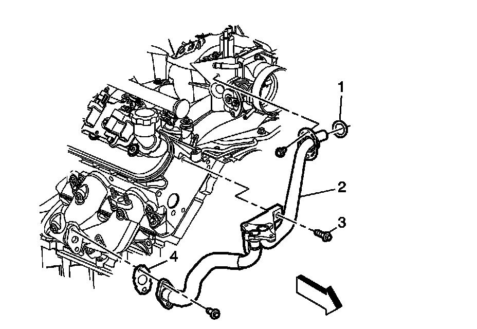 4. Remove the EGR pipe mounting fasteners from the right cylinder head.