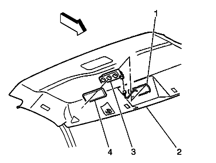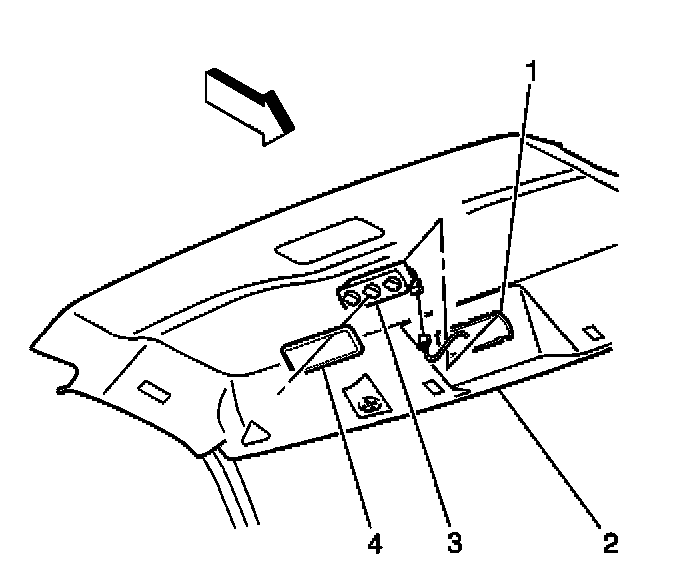 2. Remove the front control switch (3) by unsnapping the retainers from the headliner.