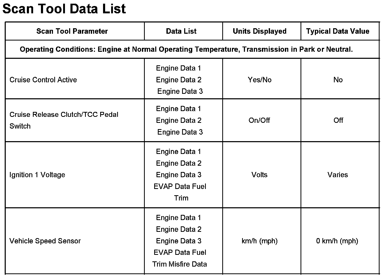 Scan Tool Data List: