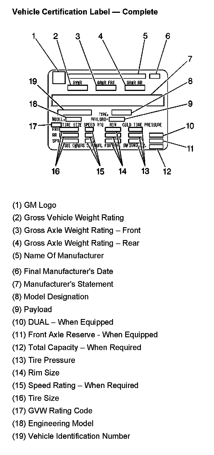 LABEL - VEHICLE CERTIFICATION (Without RPO Z49)VEHICLE CERTIFICATION LABEL - COMPLETE