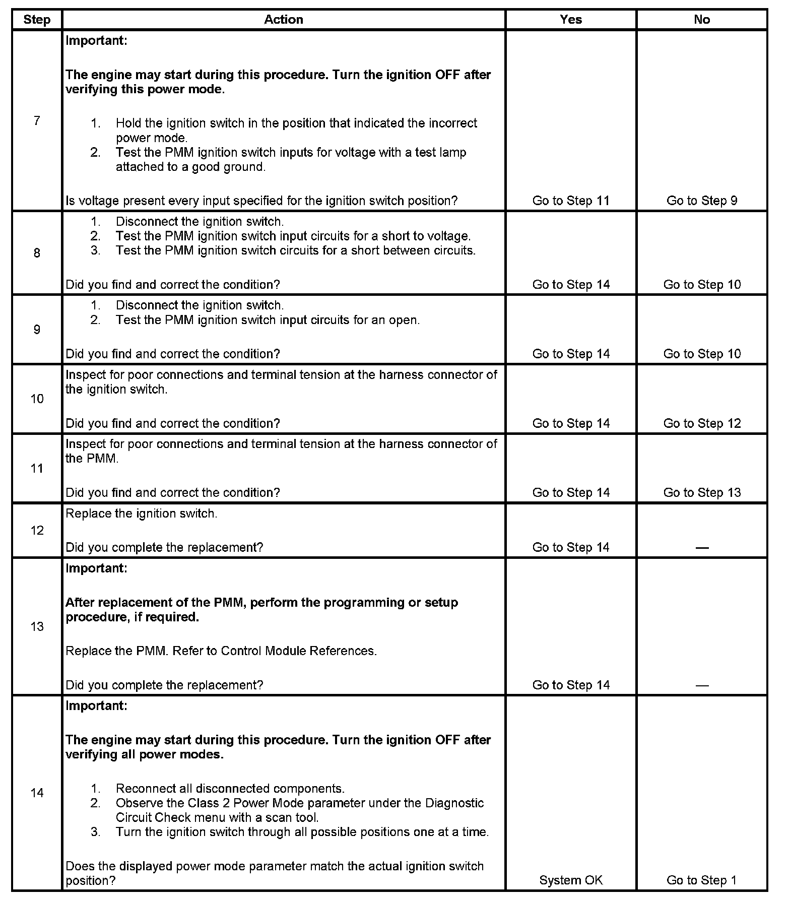 8. If any ignition switch parameters that should be inactive in the present ignition switch position are active, 2 ignition switch signal circuits may be shorted together.
