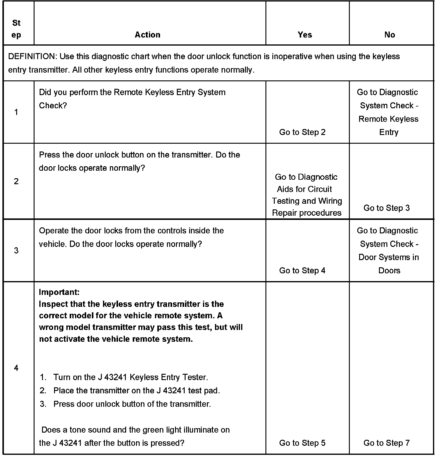 Door Unlock Function Inoperative With Transmitter