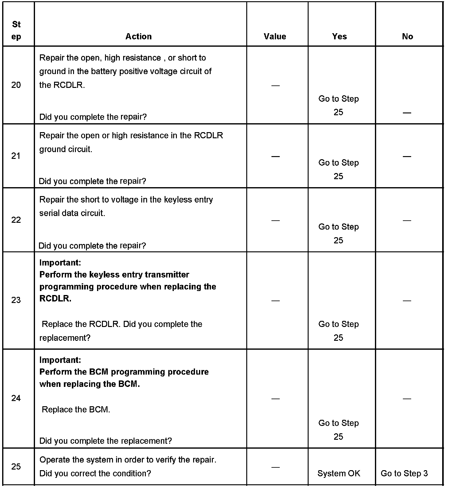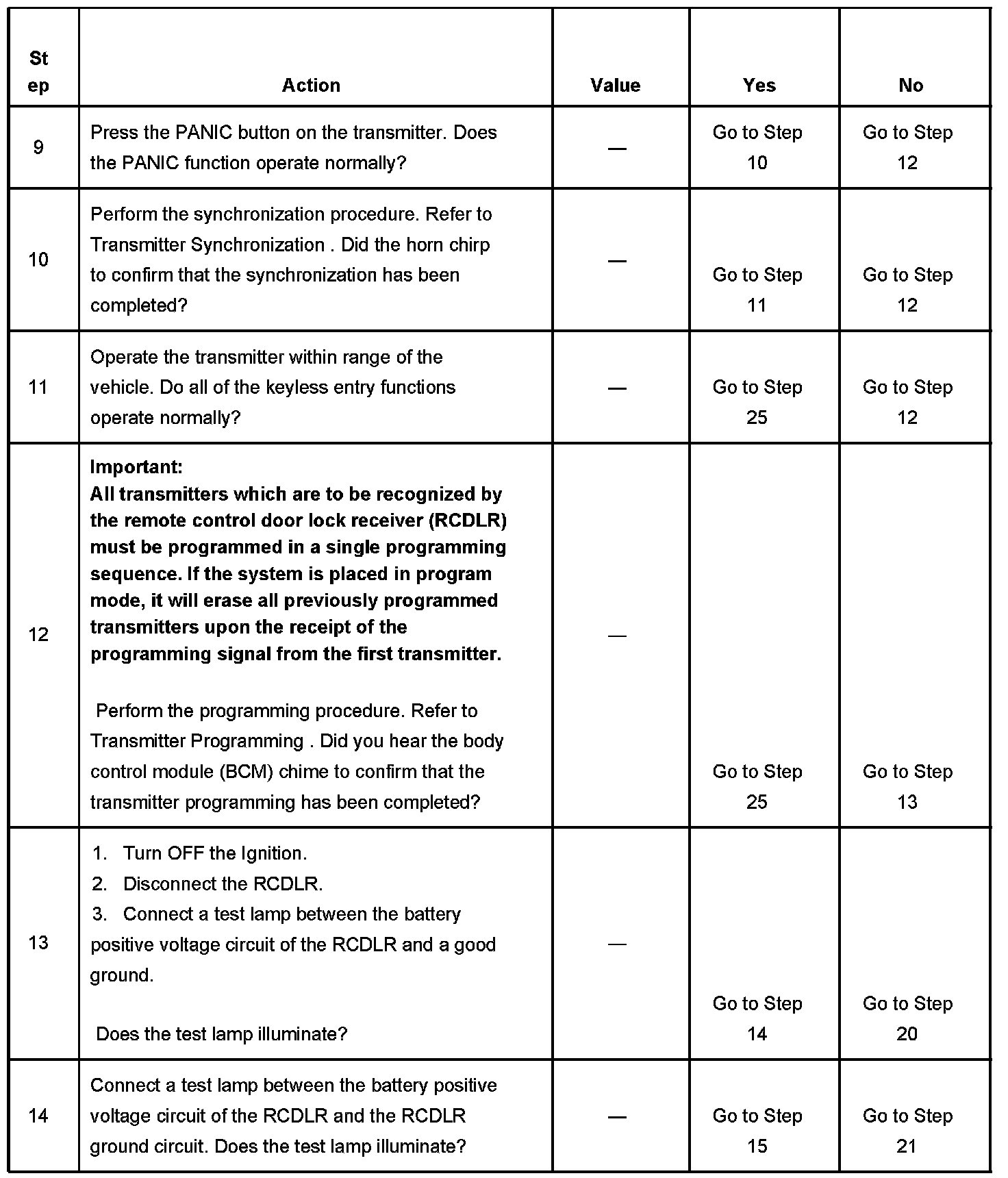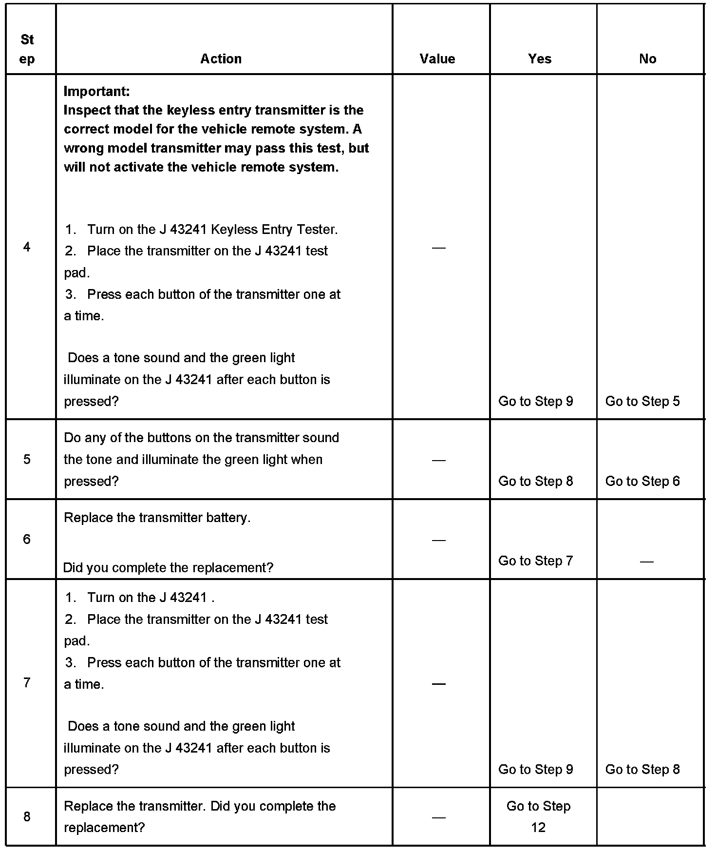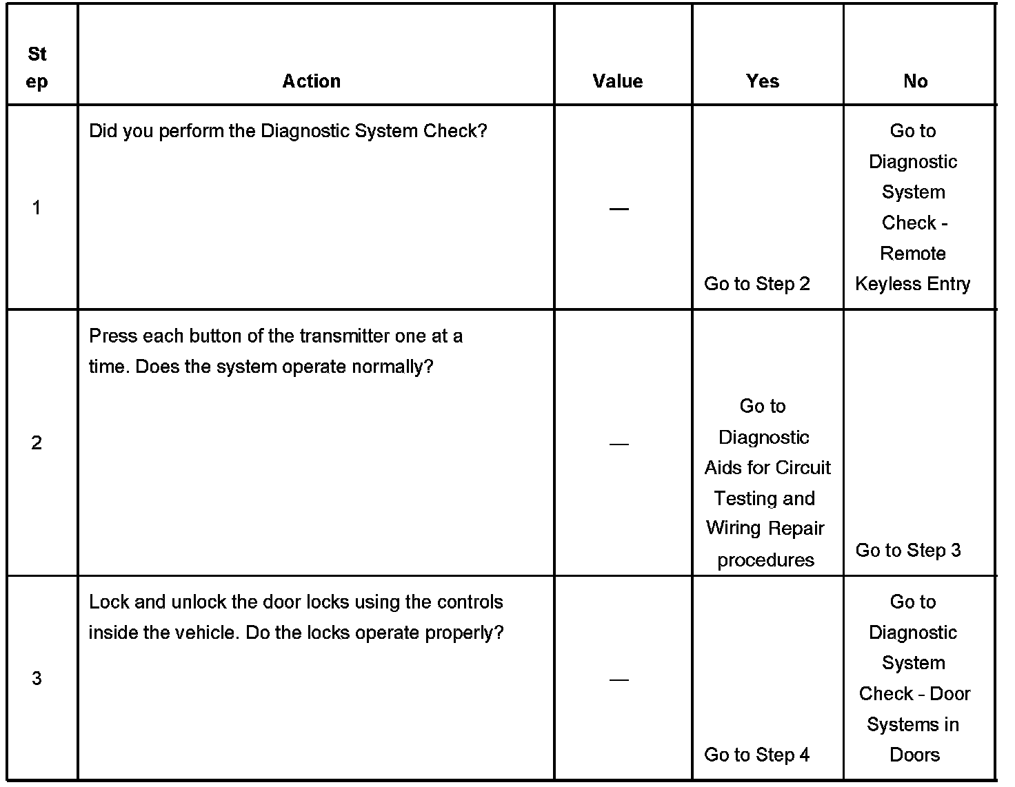 KEYLESS ENTRY SYSTEM INOPERATIVETEST DESCRIPTION