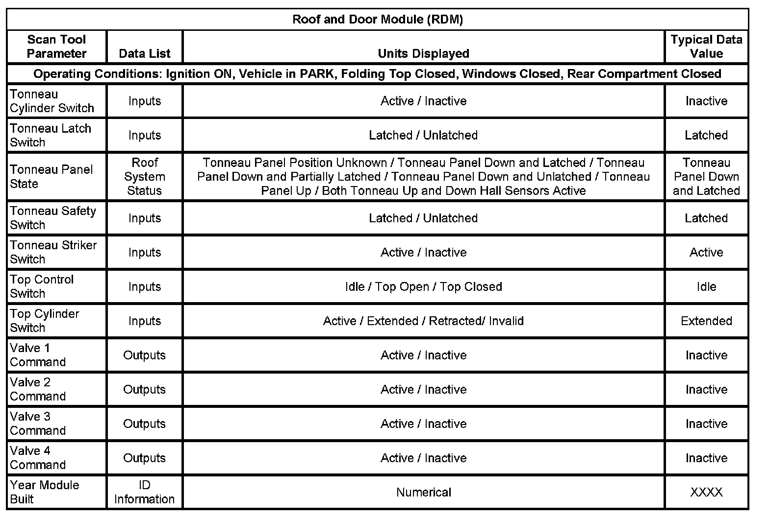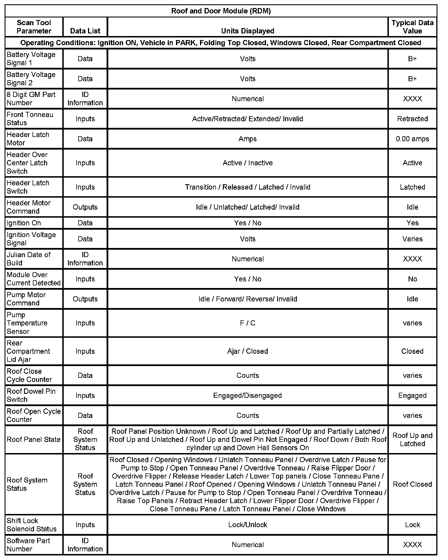 Scan Tool Data List