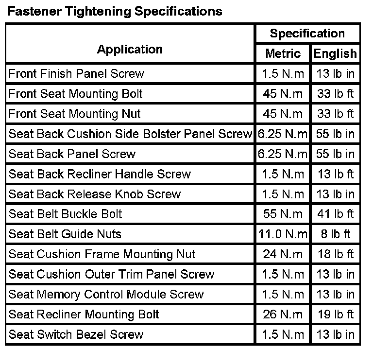 Seats: Specifications