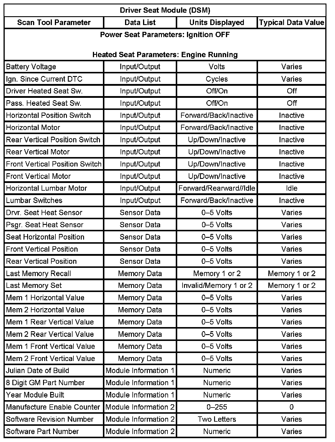 Driver Seat Module (DSM):