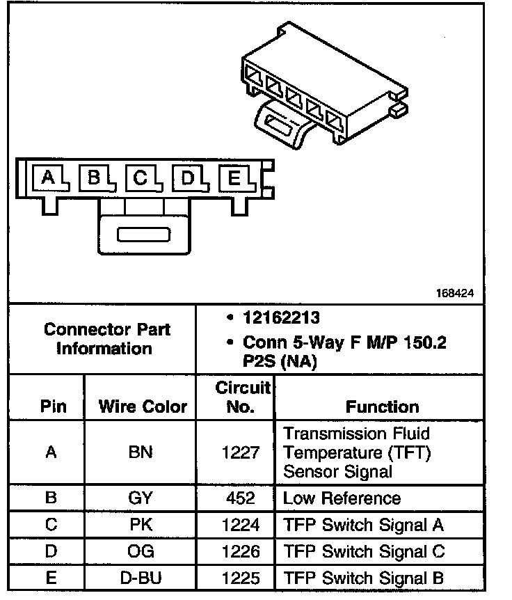 Automatic Transmission Fluid Pressure (TFP) Manual Valve Position Switch Connector, Wiring Harness Side