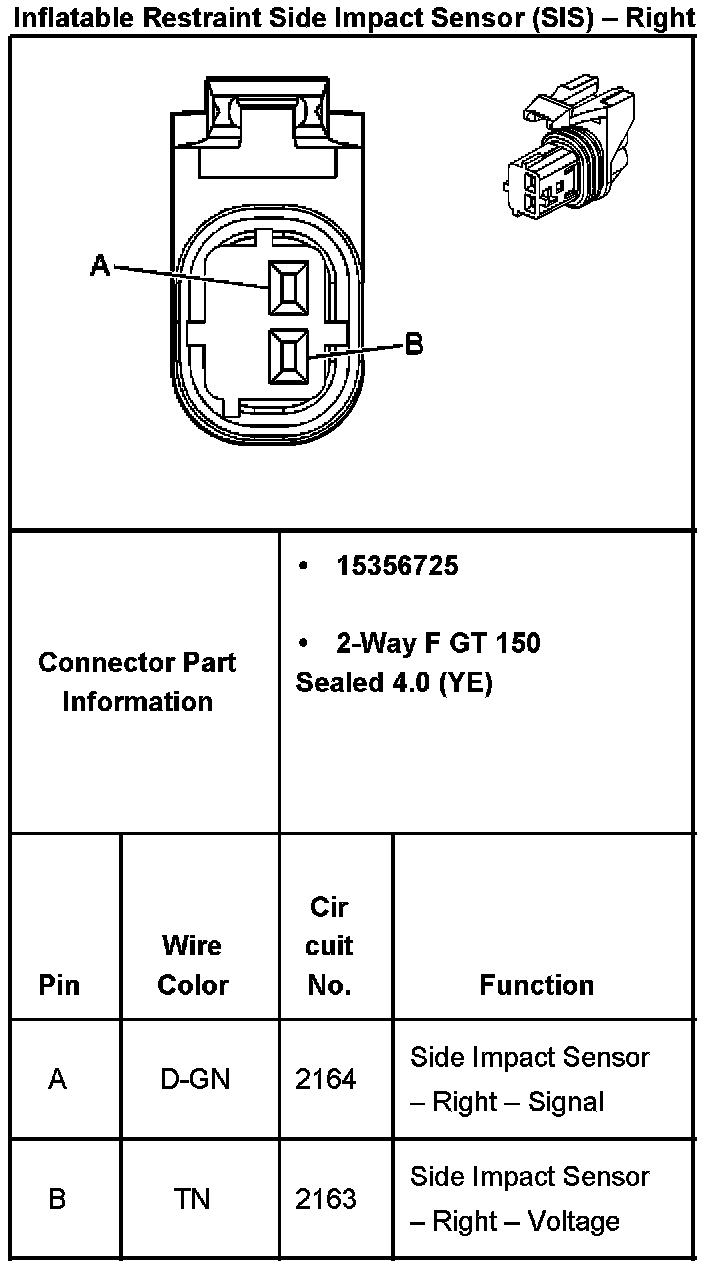 Inflatable Restraint Side Impact Sensor(SIS)-Right: