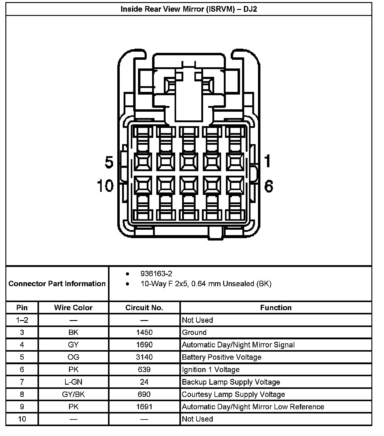 Inside Rear View Mirror (ISRVM) - Without RPO Code DJ2: