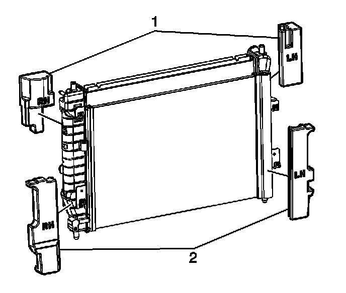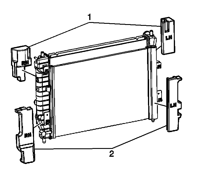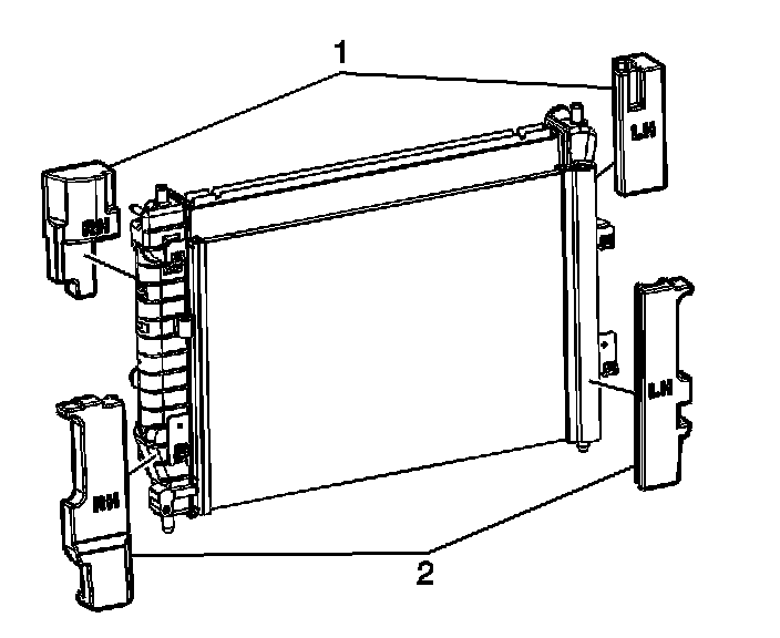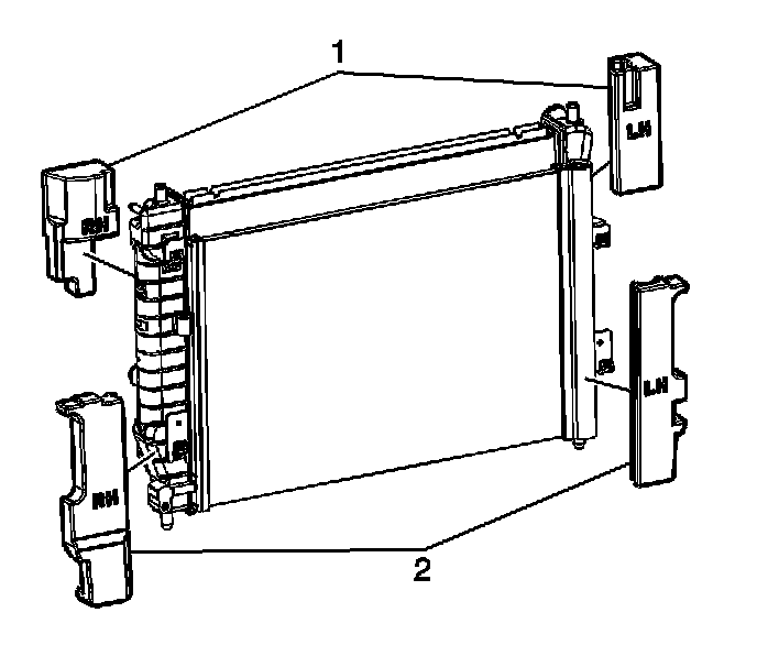 5. Install the lower radiator seals (2).