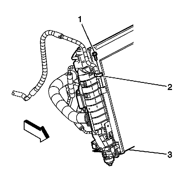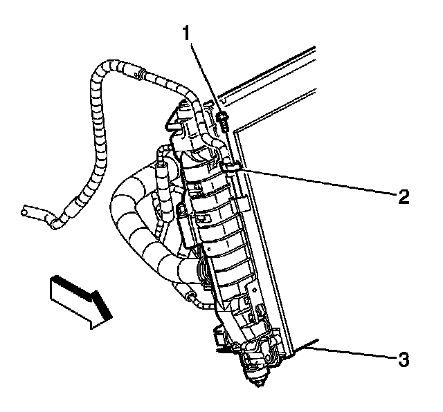 3. Remove the upper radiator seals (1).