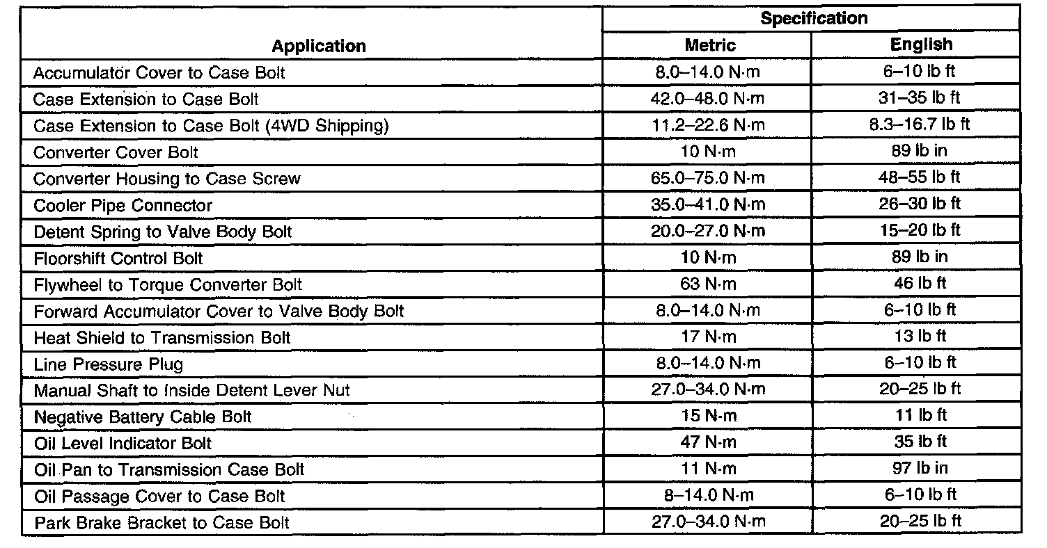 Fastener Tightening Specifications