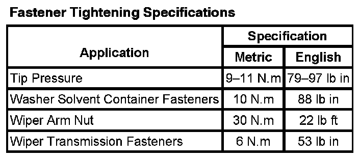 Wiper and Washer Systems: Specifications