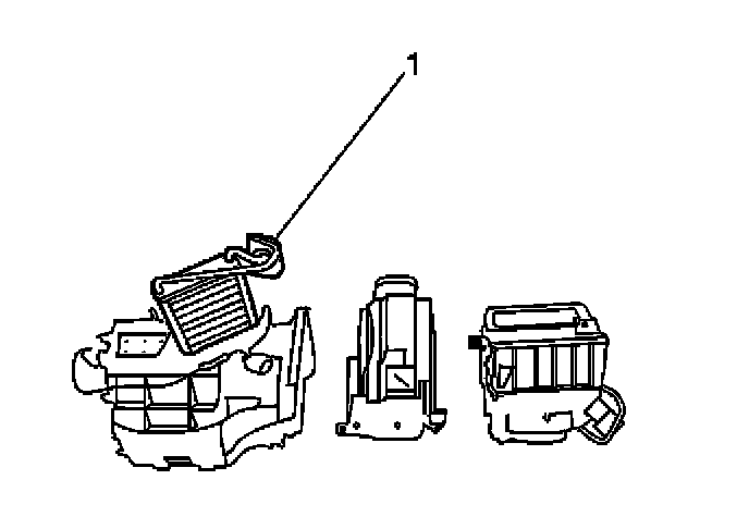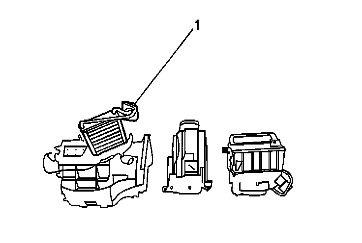 3. Lift the heater core (1) up and out of the heater case.