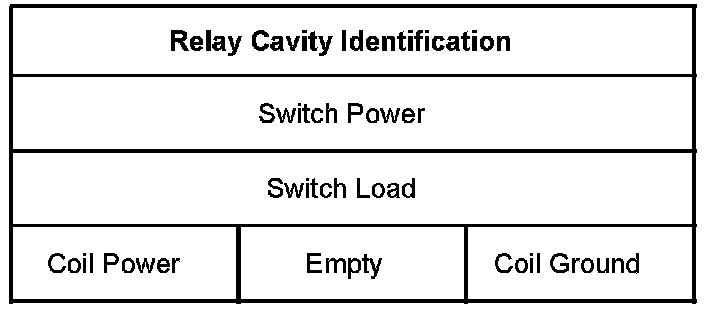 Use the relay cavity table in order to locate the correct cavities to probe during diagnosis. The table layout corresponds to the cavity layout of the relay block.