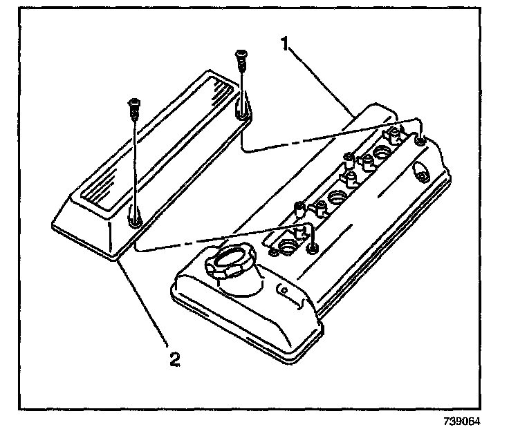 18. Install the ignition coil cover (2) to the bank 1 valve cover (1).