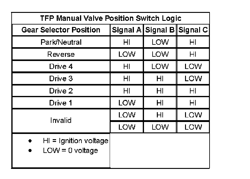 Transmission Fluid Pressure (TFP) Manual Valve Position Switch Logic