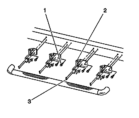 4. Install the assist step assembly to the mounting brackets with 4 U-bolts (3) and 8 nuts (1).