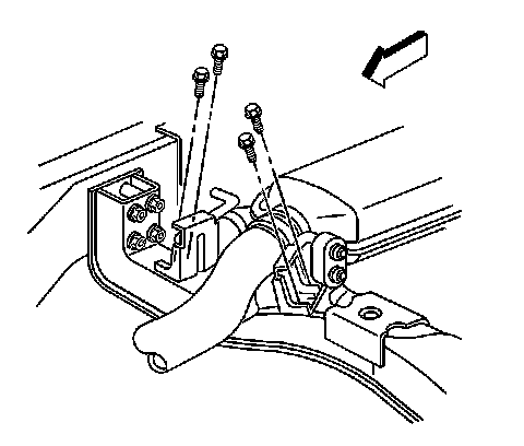 3. Install the catalytic converter hanger bracket to the transmission support mounting bolts, if necessary.