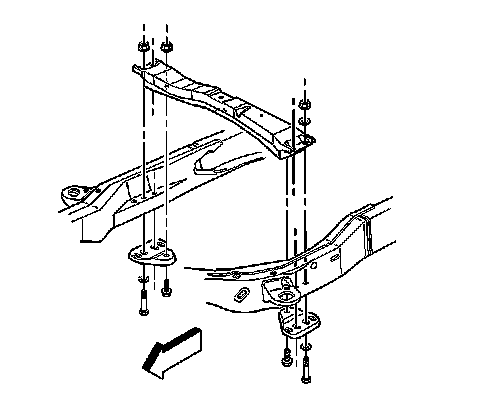 6. Remove the transmission support to the frame nuts, bolts, and reinforcements.