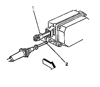 7. Disconnect the cruise control cable bead (2) from the end of the ribbon (1).