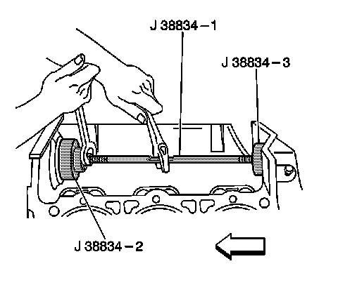 4. Install the J 38834-2 on the inside of the balance shaft front bearing bore.