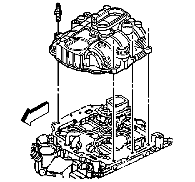 9. If reusing the fasteners, apply threadlock GM P/N 12345382 (Canadian P/N 10953489) or equivalent, to the threads of the upper intake manifold attaching studs.