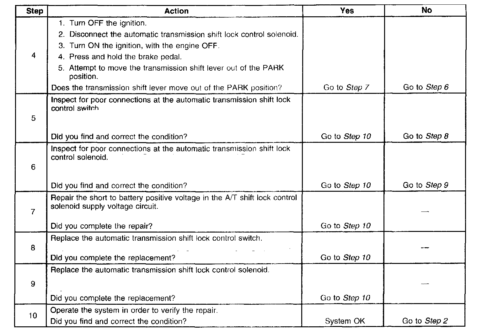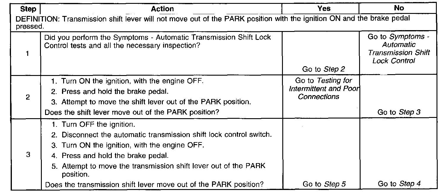 Shift Lever Does Not Move With Brake Pedal Depressed - Console Shift