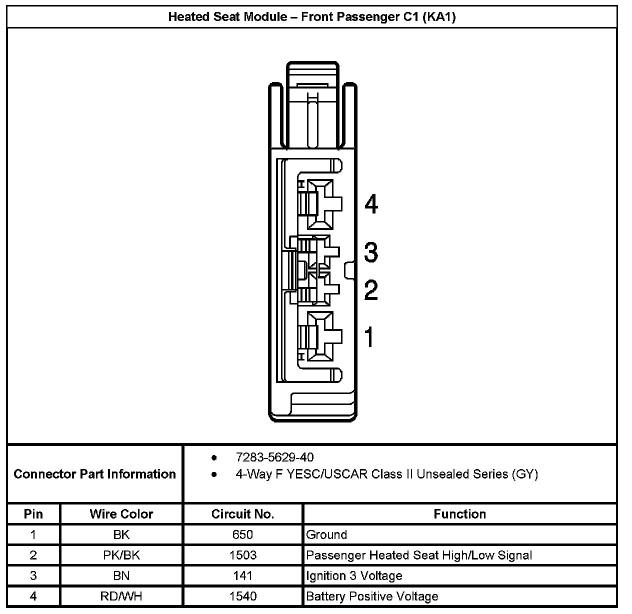 Heated Seat Module - Front Passenger C3 (With RPO Code KA1):