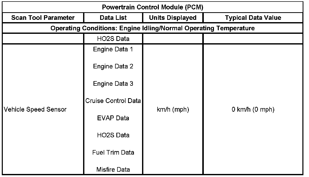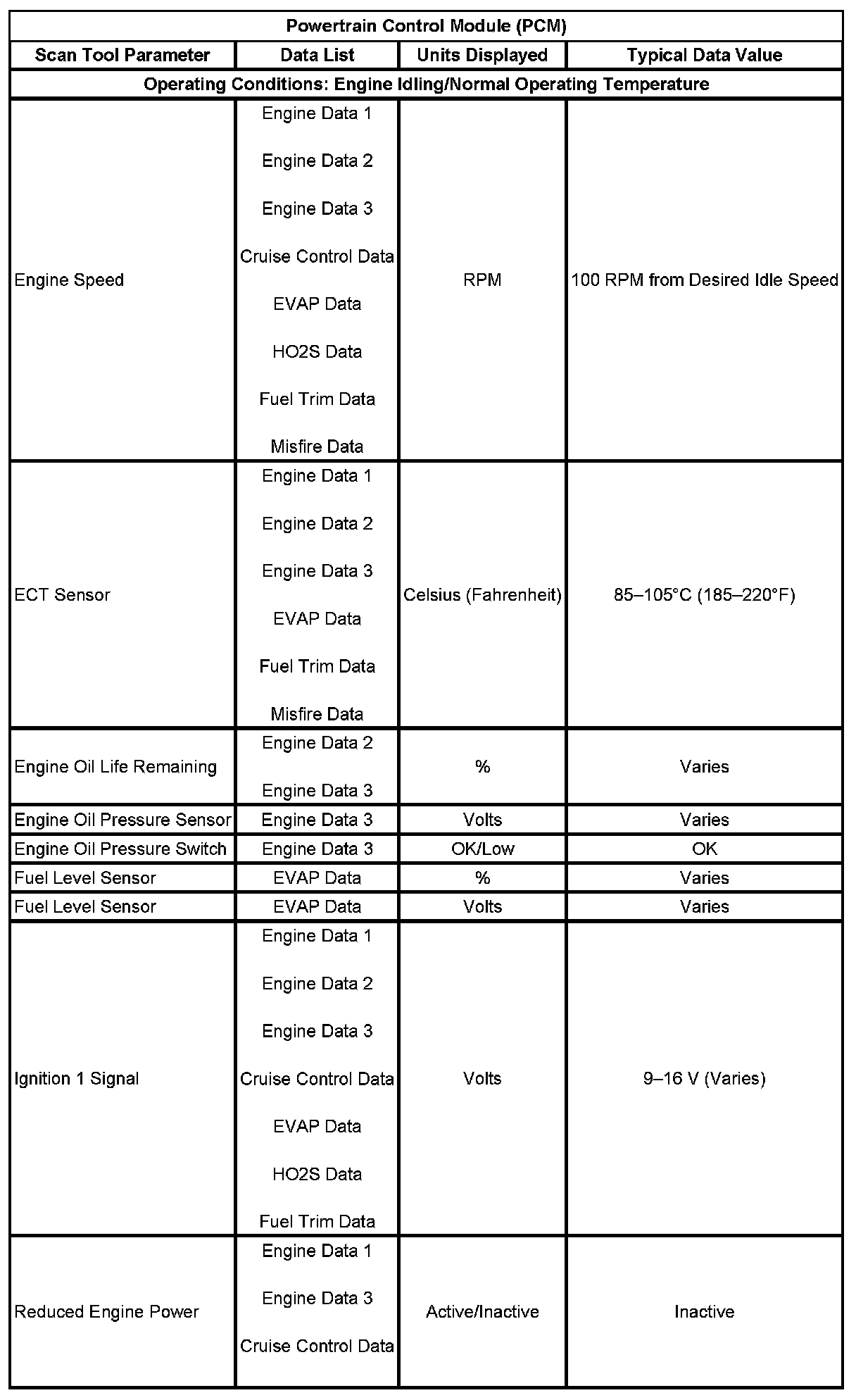 Scan Tool Data List - Powertrain Control Module (PCM)