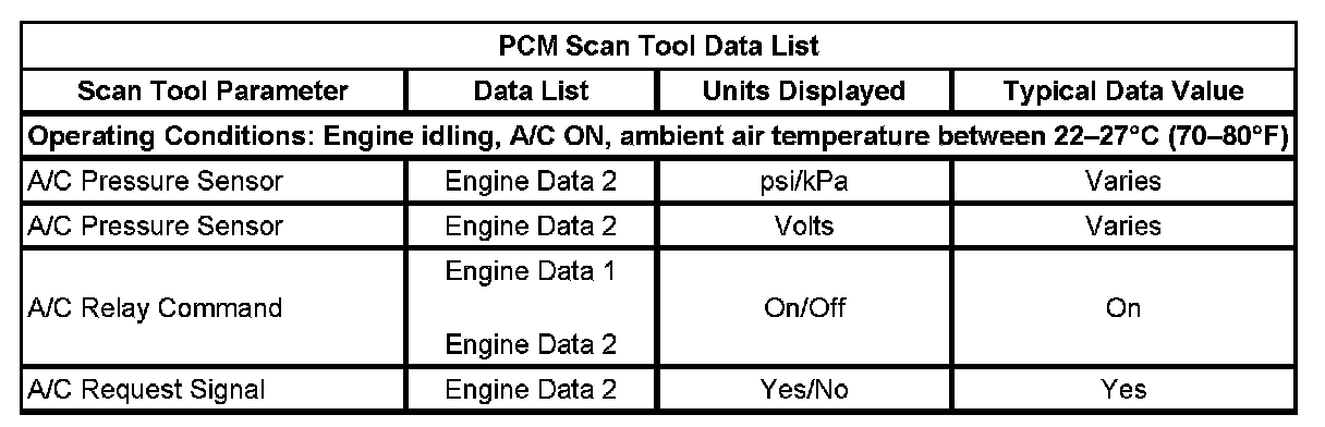 Use the Scan Tool Data Display Values and Definitions Information in order to assist in diagnosing the powertrain control module (PCM) problems. Compare the vehicles actual scan tool data with the typical data display value table information. Use the data information in order to aid in understanding the nature of the problem when the vehicle does not match with the typical data display values.