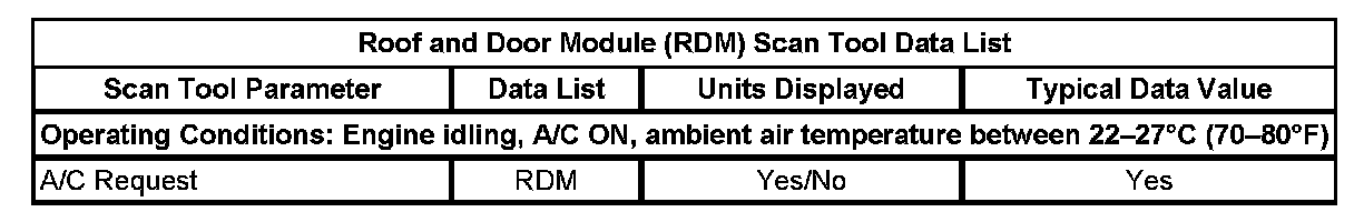 The scan tool data values were taken from a known good vehicle under the following conditions: