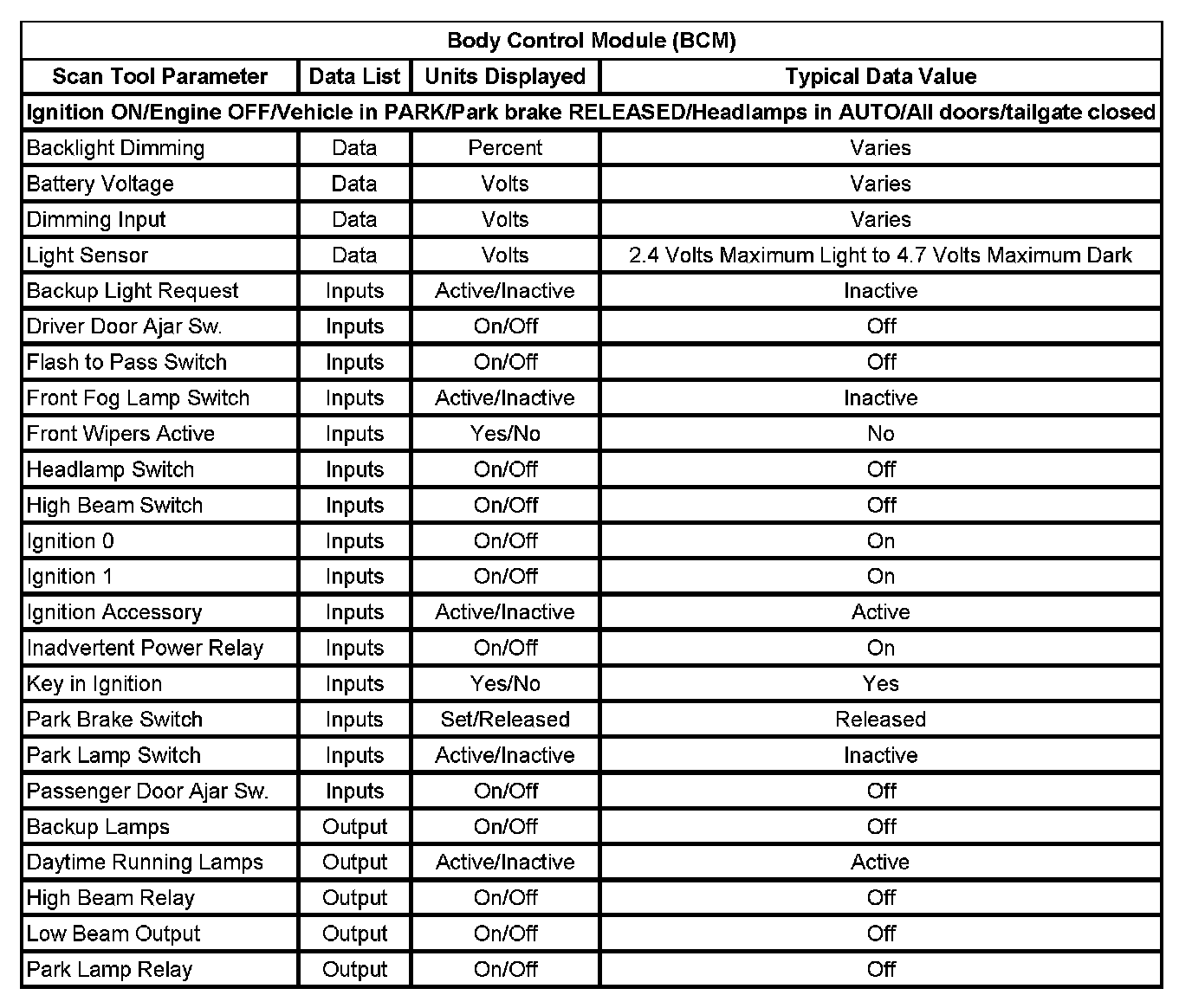 Body Control Module (BCM):