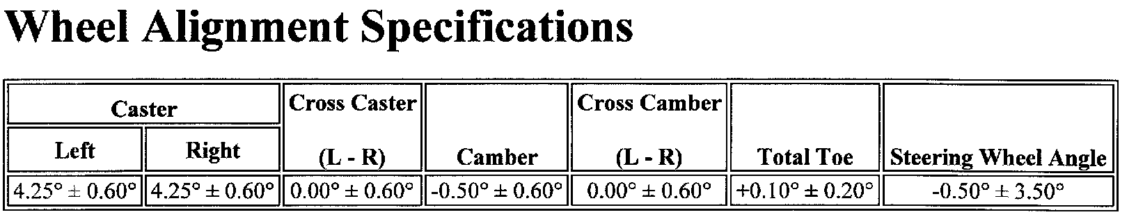 Wheel Alignment Specifications
