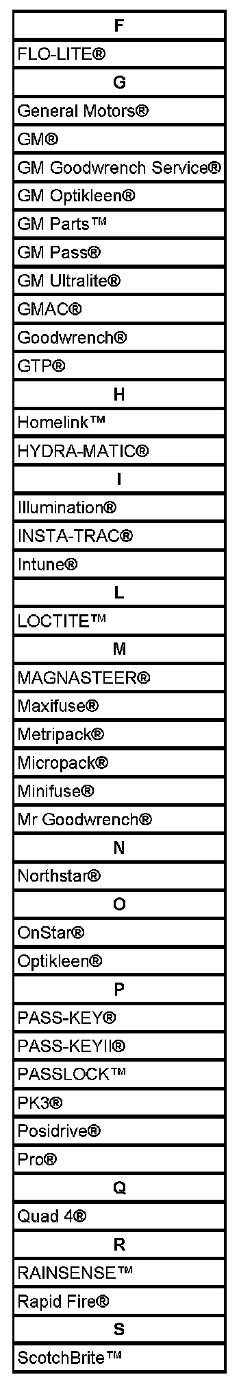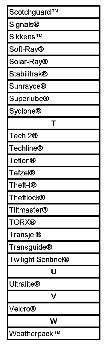 Listed are Registered Trademarks ((R)) or Non-Registered Trademarks ((TM)) which may appear in this service data.