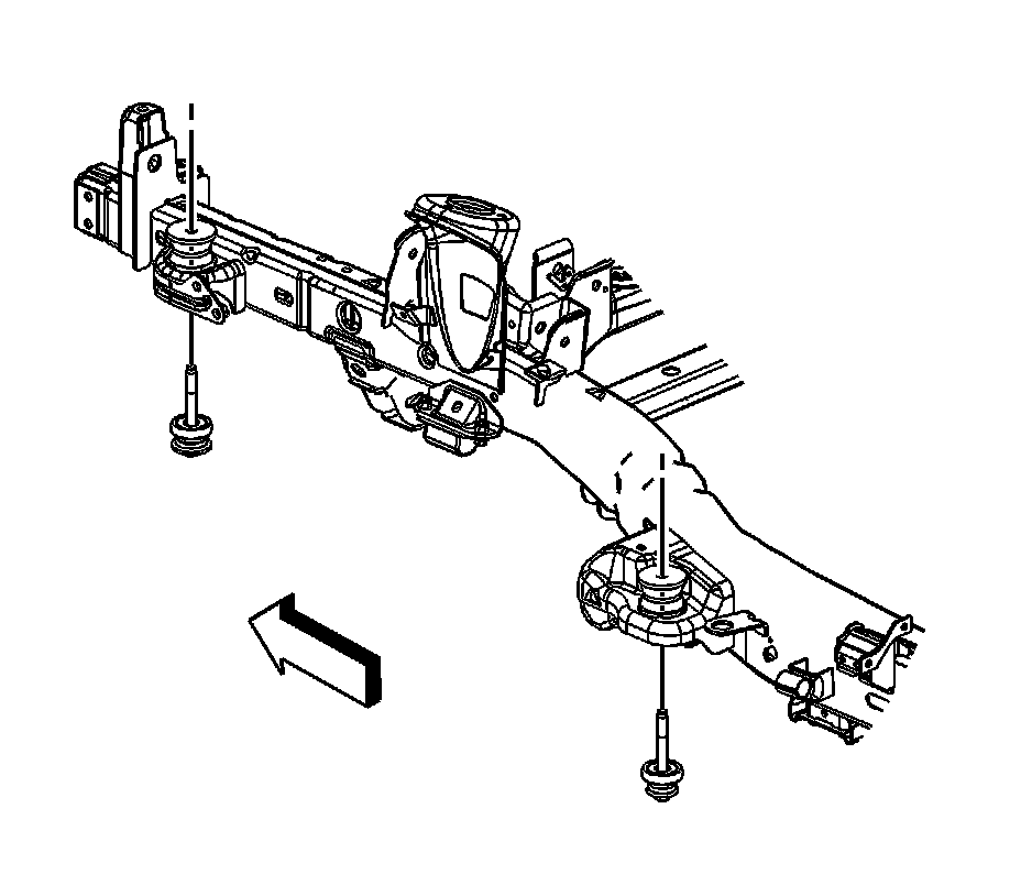 5. Remove the bolt/cushion assembly at the number 3 and the number 4 body mount, long wheel base vehicles.