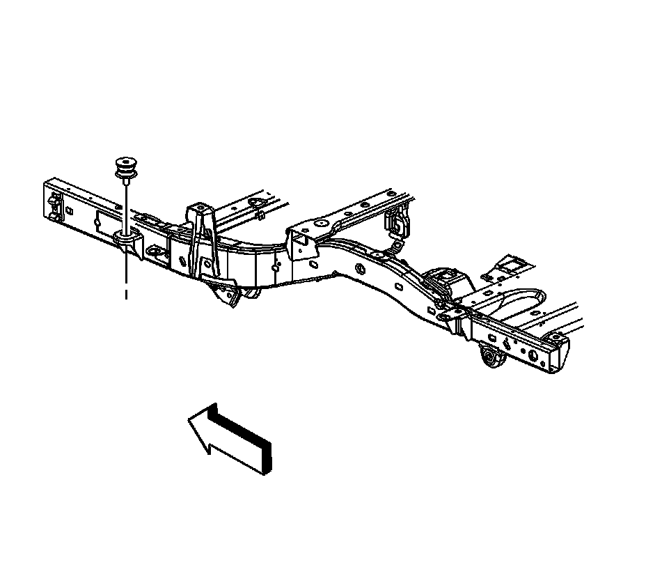 4. Remove the bolt/cushion assembly at the number 3 body mount, short wheel base vehicles.