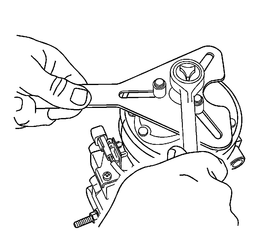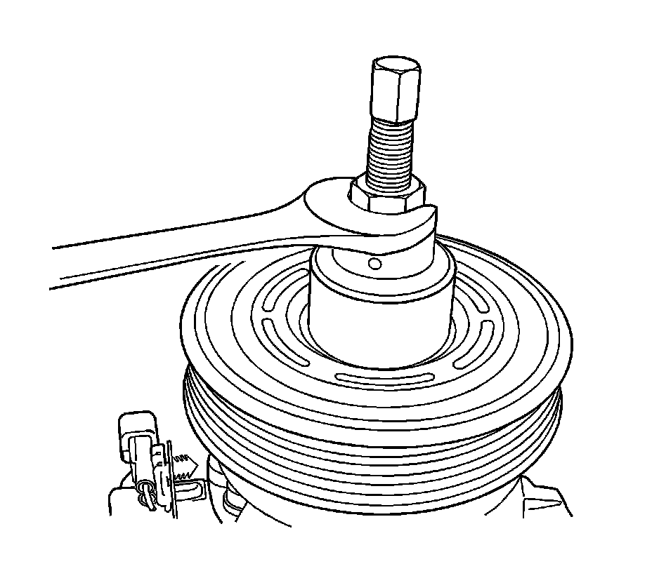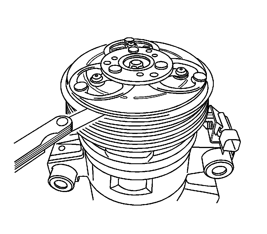 13. After the clutch bolt is installed, verify that the compressor pulley spins freely.