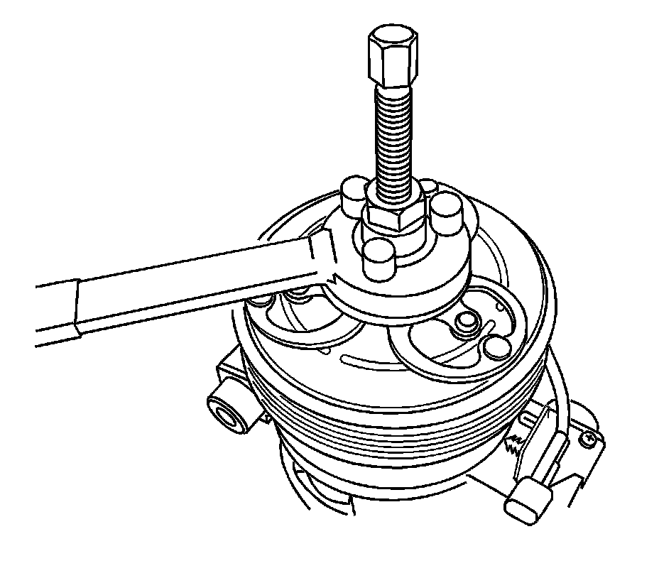 8. Using GE-47850 with J 25031-A , remove the compressor pulley from the compressor.
