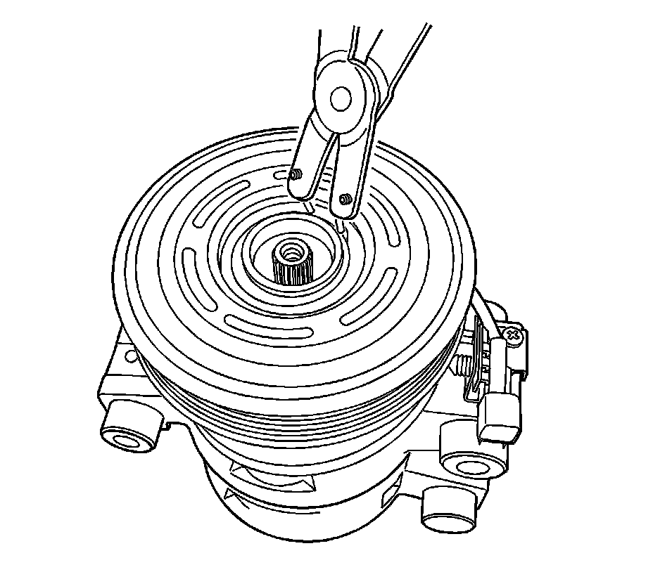 12. Using J 37872 to hold the compressor clutch, tighten the clutch bolt.