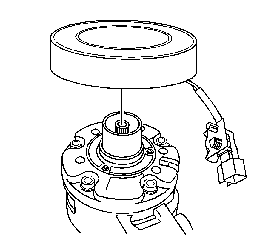 8. Align the compressor clutch with the compressor shaft and install to the compressor.