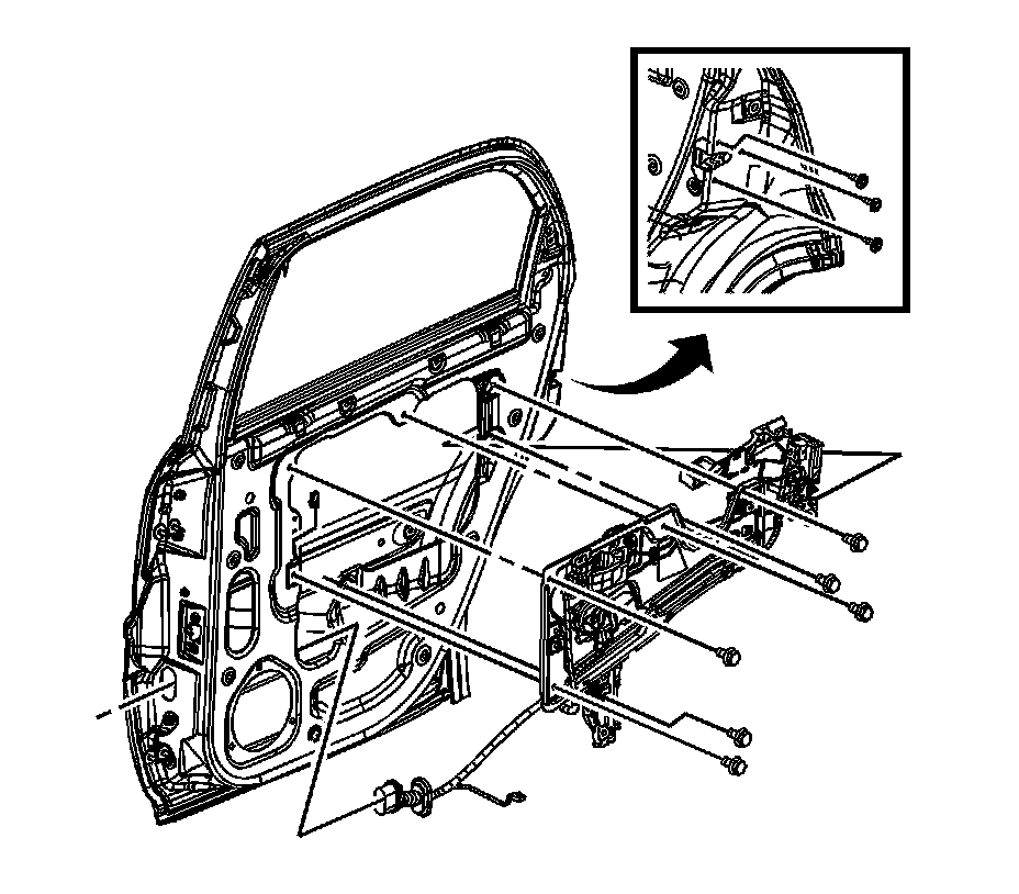 1. Remove the rear door outside handle. Refer to Door Handle Replacement - Rear Outside (Service and Repair) .