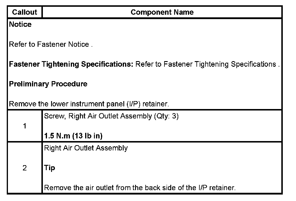 AIR OUTLET REPLACEMENT - INSTRUMENT PANEL - RIGHT