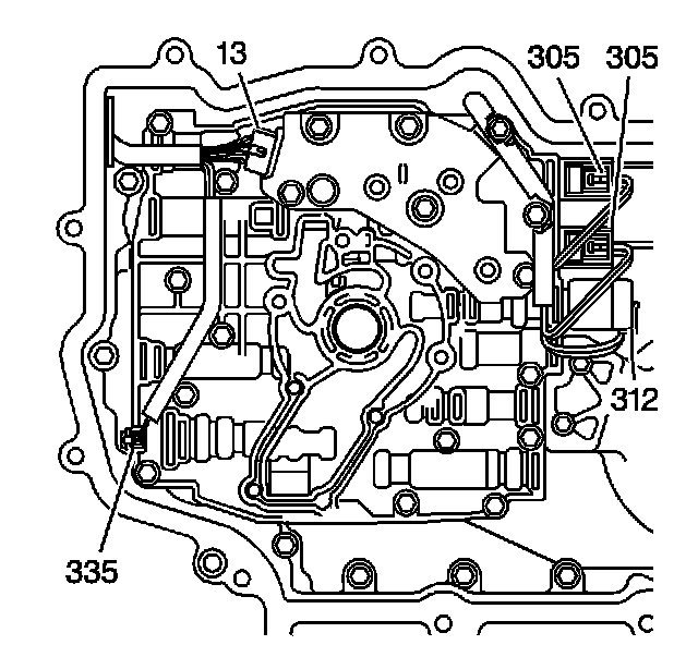 4. Disconnect the wiring harness connectors from the TCC solenoid (335).