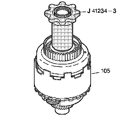 42. Leave the J 41234-3 in place for at least five minutes. If possible, leave the J 41234-3 in place until you install the assembly (105) into the transmission case.