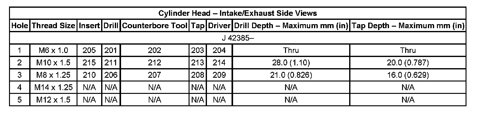 Thread Repair Specifications Engine Block: