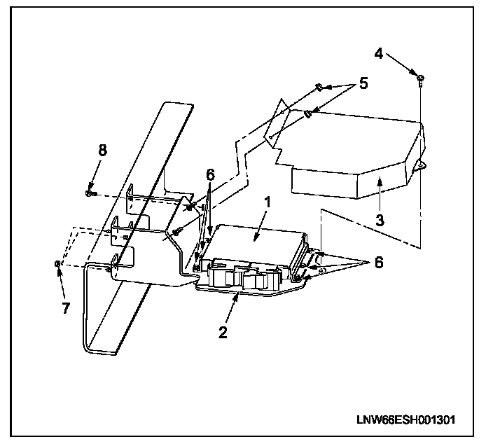 3. Remove the ECM cover nuts (5) and bolt (4).