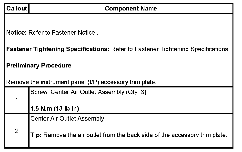 Instrument Panel Center Air Outlet Replacement